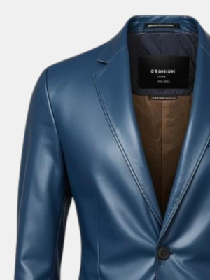 Classic Men’s Blue Leather Blazer Jacket