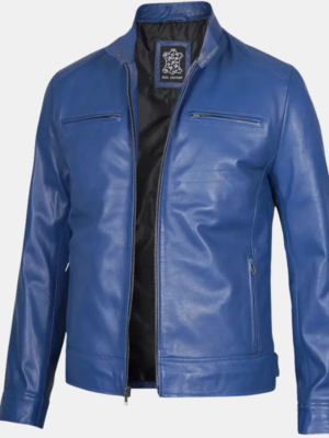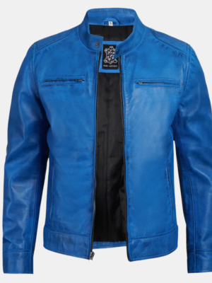 Dodge Men’s Cafe Racer Jacket Bold Blue Leather Biker Look