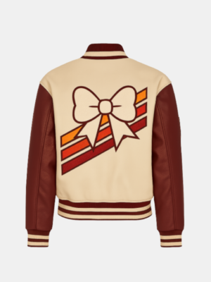 Unisex Beige ‘V’ Patch Wool Varsity Leather Jacket