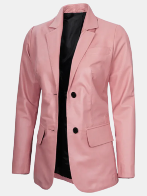 Premium Women’s Real Leather Blazer Blush Pink Luxe Edition