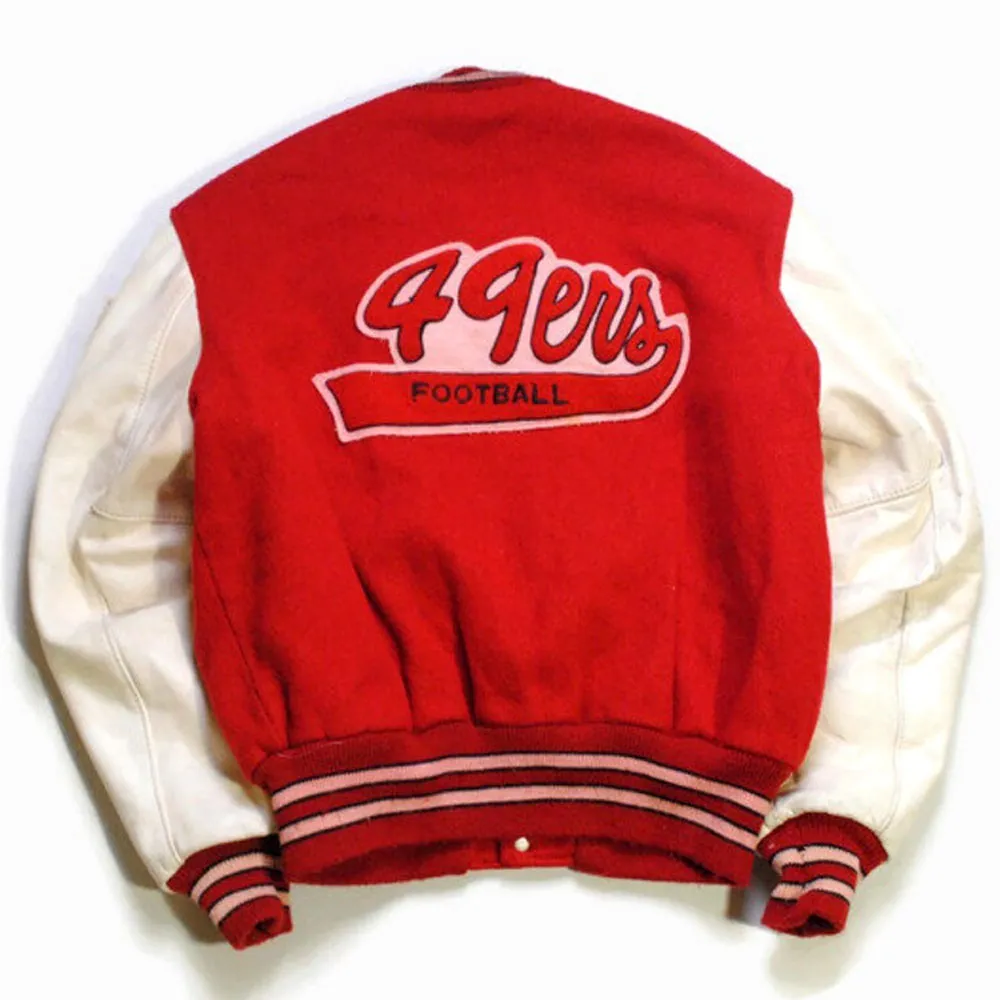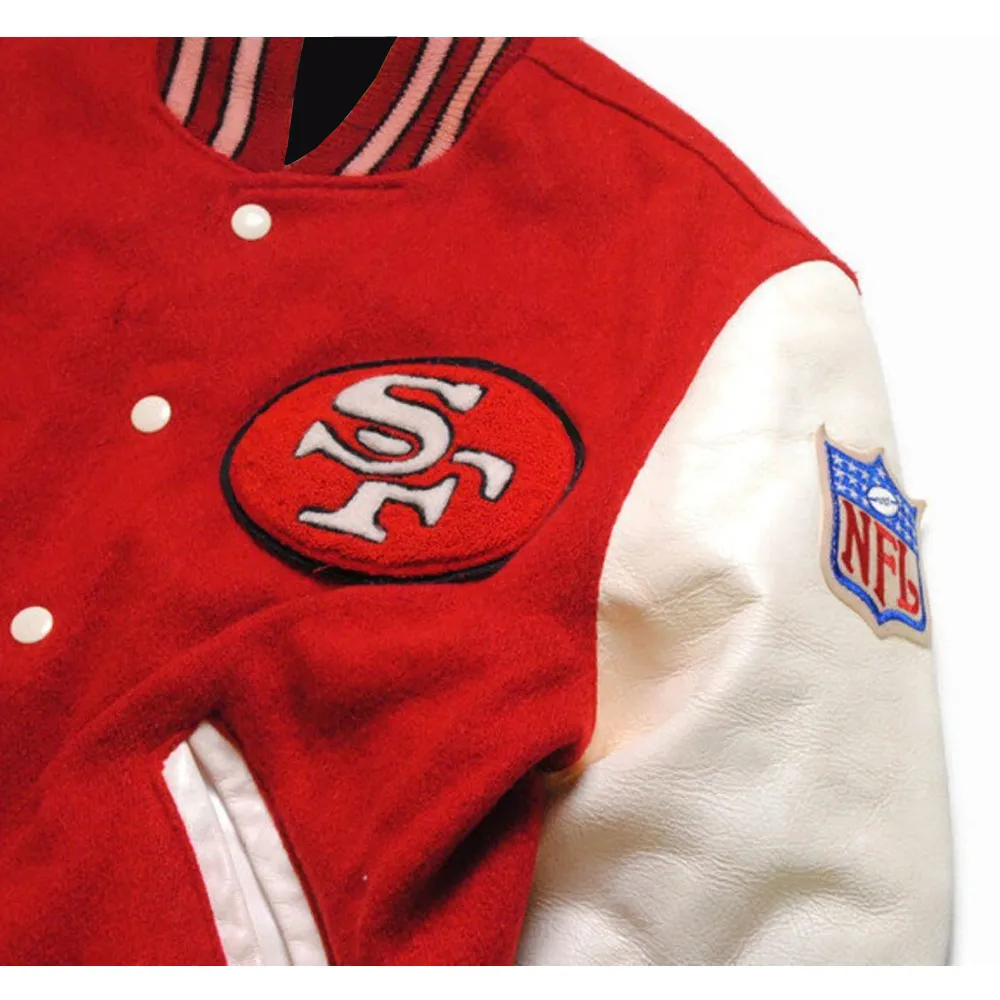 Ideal for streetwear or fan gear, the 49ers SF Super Bowl Varsity Jacket pairs easily with jeans, joggers, or sneakers. It also makes a great gift for NFL fans who want to show their pride in style.