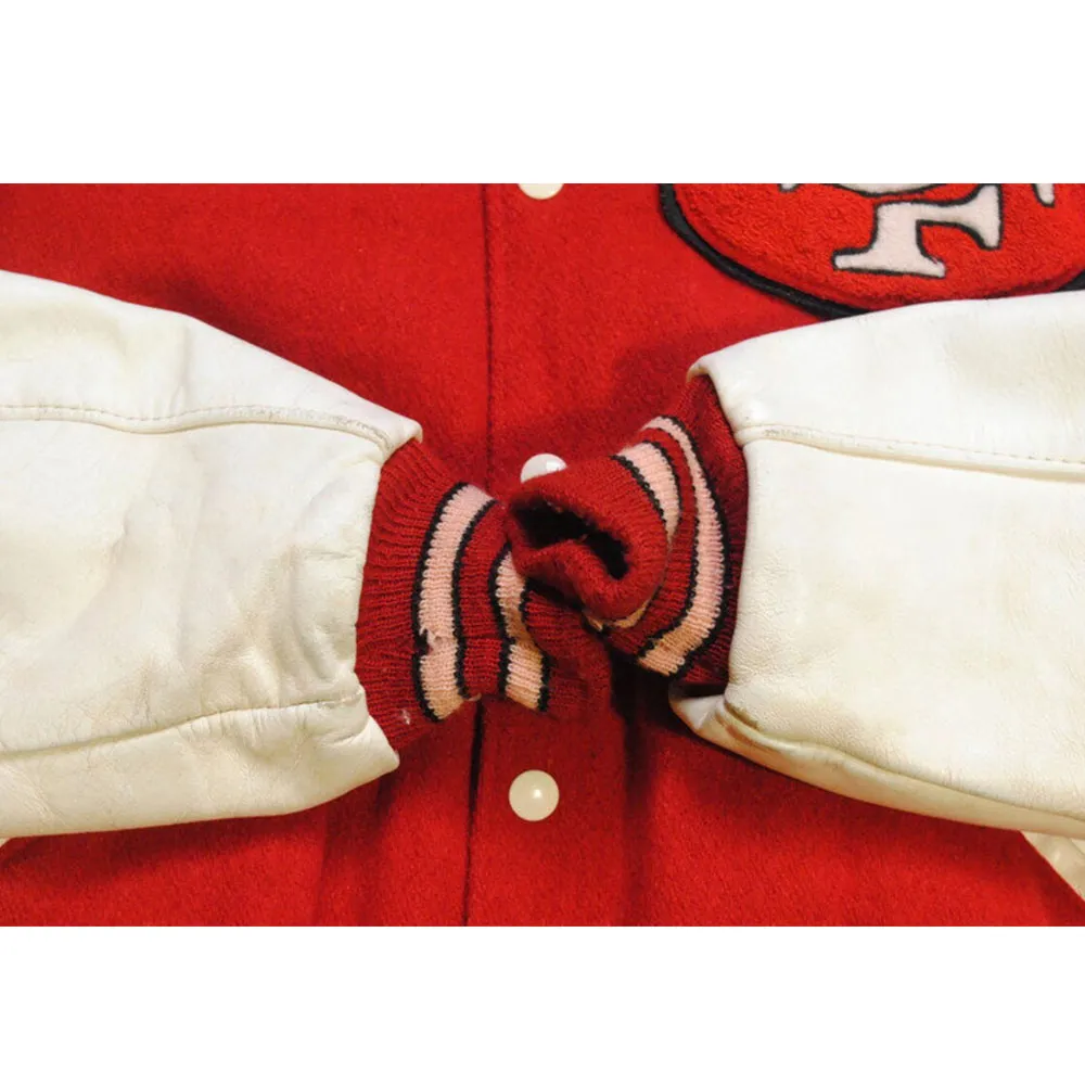 Show your championship pride with the 49ers SF Super Bowl Varsity Jacket, inspired by the legacy of the San Francisco 49ers. This bold and stylish jacket is made for true fans. It blends classic varsity design with modern comfort, making it a standout addition to any wardrobe.