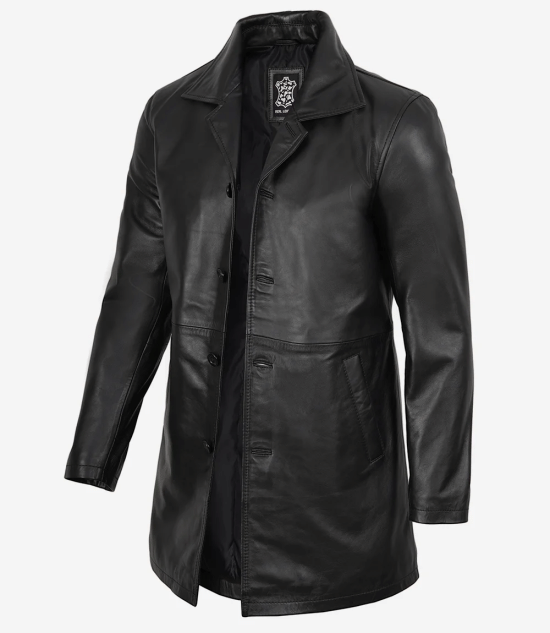 Black Mens 3 4 Length Leather Car Coat