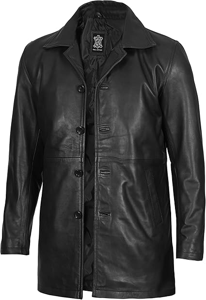 Decorum Leather Coat Men – Car Coat Style Real Lambskin Leather Men Winter Jacket