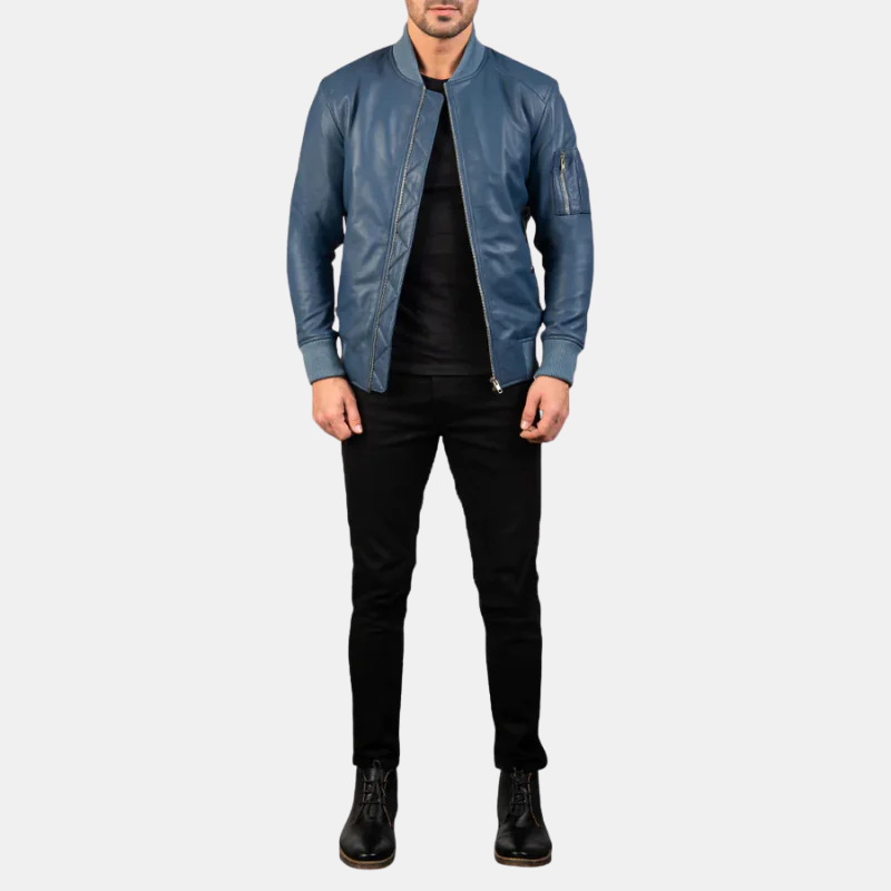 Elevate Your Style with the Men Bomia MA-1 Blue Leather Bomber Jacket