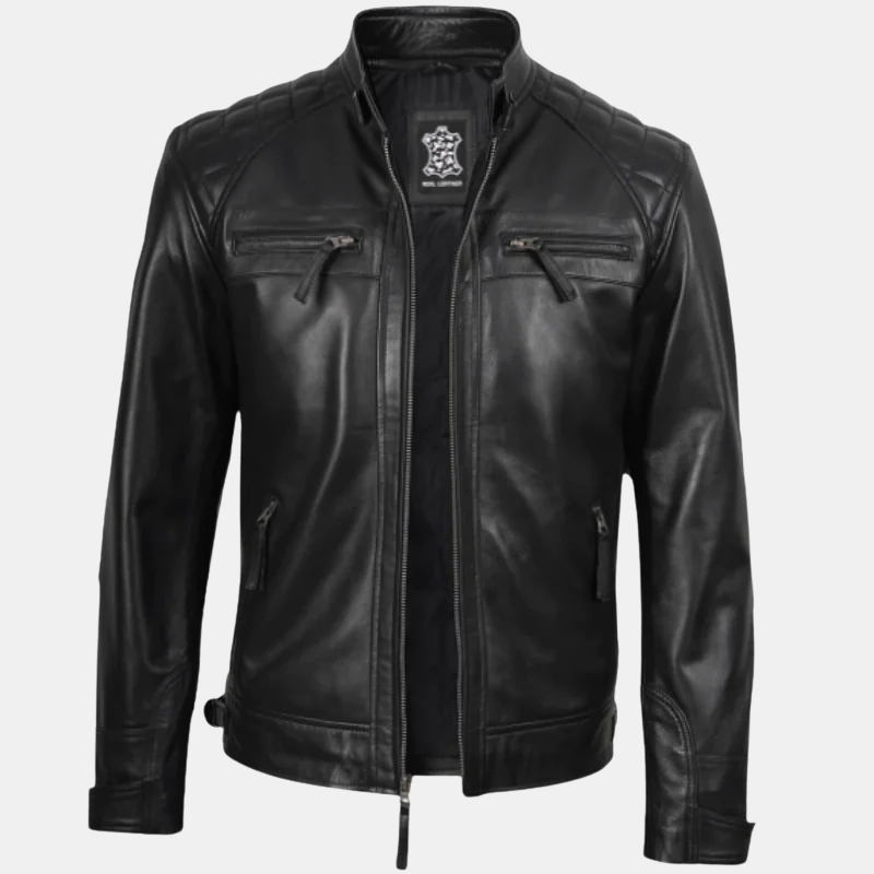 The black leather cafe racer jacket is a classic piece that combines both modern and classic aspects. The jacket has quilted details on the arms and shoulders giving a unique style to the jacket and improving its function. The motorcycle jacket for men with a quilted jacket offers not only an elegant look but provides durability for the hardest of cyclists.