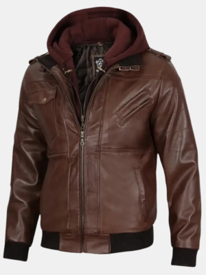 Men’s Retro Blue & White Striped Leather Biker Jacket