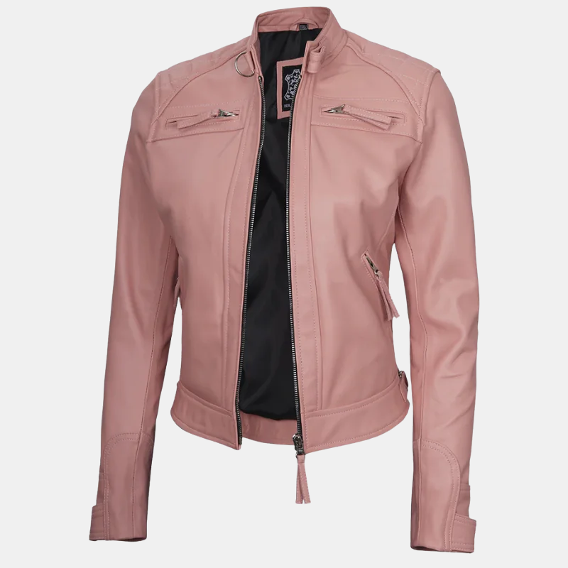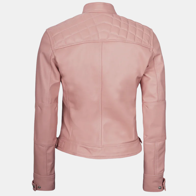 Premium Women’s Pink Diamond Real Leather Biker Jacket