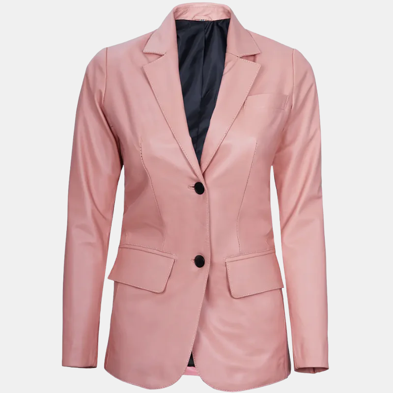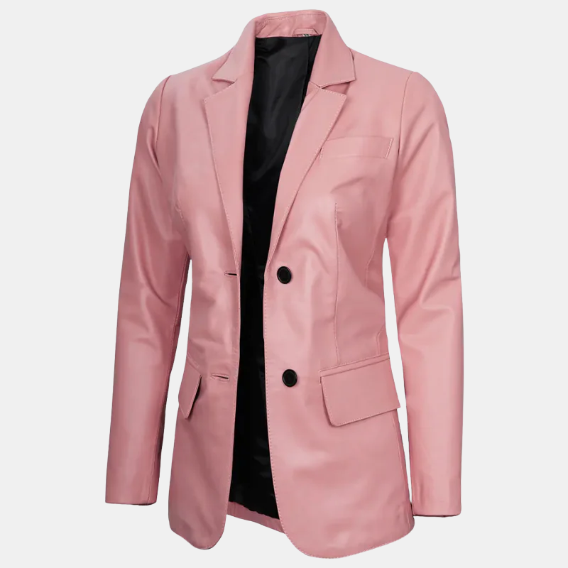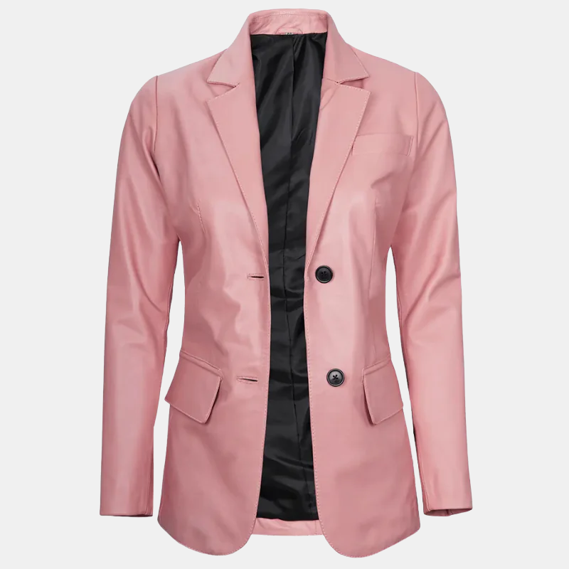 Premium Women’s Real Leather Blazer Blush Pink Luxe Edition