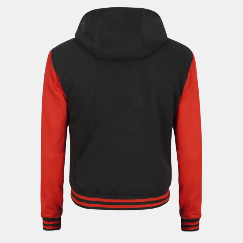 Red and Black Varsity Letterman Hood Jacket