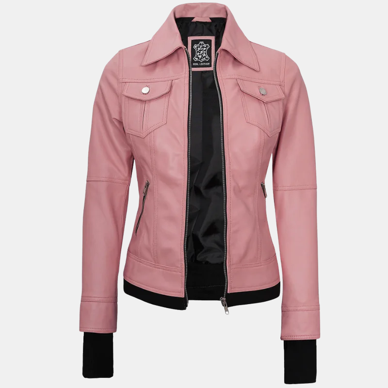 Tralee Women’s Real Leather Pink Bomber Jacket with Hood