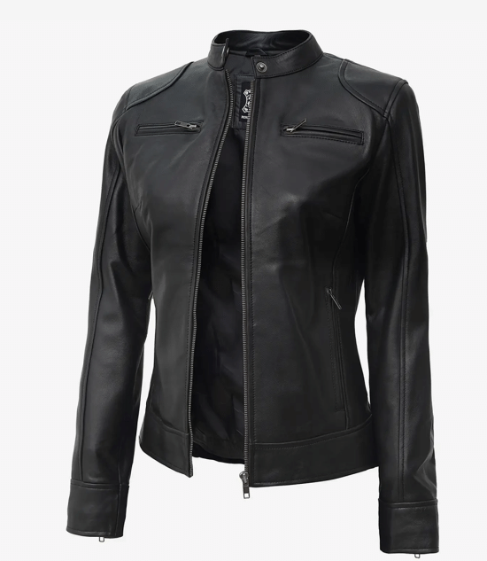 The black cafe racer leather jacket for women is a showstopper. A perfect style gear to wear every day. 100% Real Leather. Get discount with coupon code.
