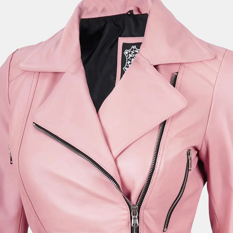 Unleash Your Bold Side with Our Women’s Pink Asymmetrical Leather Jacket